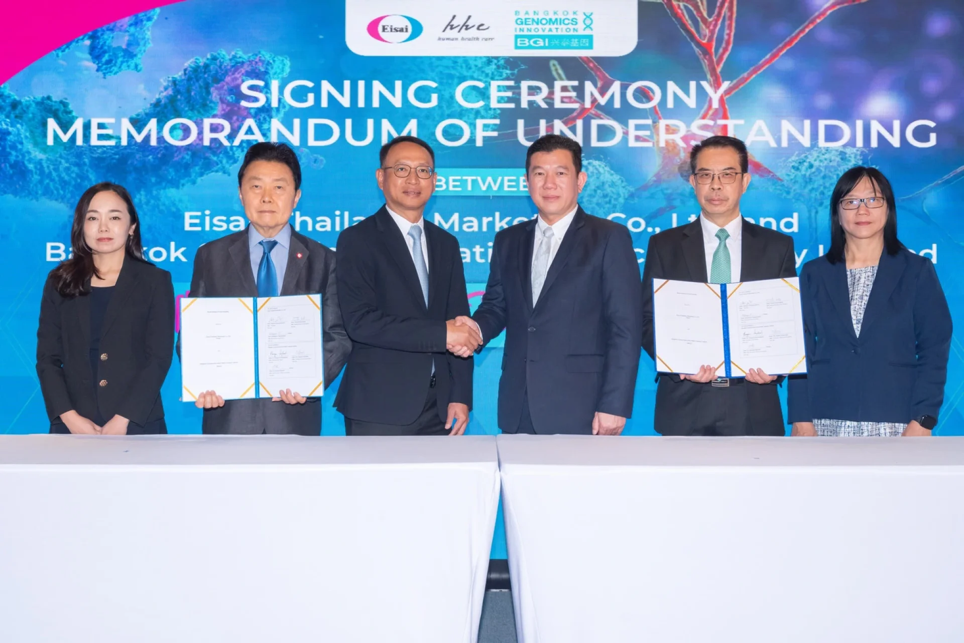 ดร.เสาวลักษณ์ ด่านสกุล ประธานเจ้าหน้าที่บริหาร บริษัท แบงคอกจีโนมิกส์อินโนเวชั่น จำกัด (มหาชน) (BKGI) กล่าวว่า บริษัทฯเดินหน้าเปิดให้บริการด้านการตรวจโอมิกส์ใหม่ๆอย่างต่อเนื่อง ดึงดูดกลุ่มลูกค้าและพันธมิตร เพื่อขยายธุรกิจด้านการแพทย์แม่นยำให้เติบโตอย่างแข็งแกร่ง และการร่วมมือกันระหว่าง BKGI และ Eisai จะช่วยผสานจุดแข็งของทั้งสององค์กร นำนวัตกรรมด้านการตรวจวัดระดับโปรตีนและการตรวจยีนที่เฉพาะเจาะจงต่อโรคอัลไซเมอร์ผ่านการตรวจเลือด มาผนวกกับนวัตกรรมการประเมินสุขภาพสมองด้วยตนเอง และยานวัตกรรมใหม่ของเอไซ เพื่อพัฒนาระบบการดูแลสุขภาพสมองแบบครบวงจร ตั้งแต่การป้องกัน การคัดกรอง ไปจนถึงการวินิจฉัยที่แม่นยำ นำไปสู่การรักษาที่เหมาะสมและทันท่วงที นับเป็นก้าวหน้าที่สำคัญครั้งใหญ่ เพื่อพัฒนาระบบนิเวศการดูแลผู้ป่วยโรคอัลไซเมอร์แบบครบวงจรในประเทศไทย