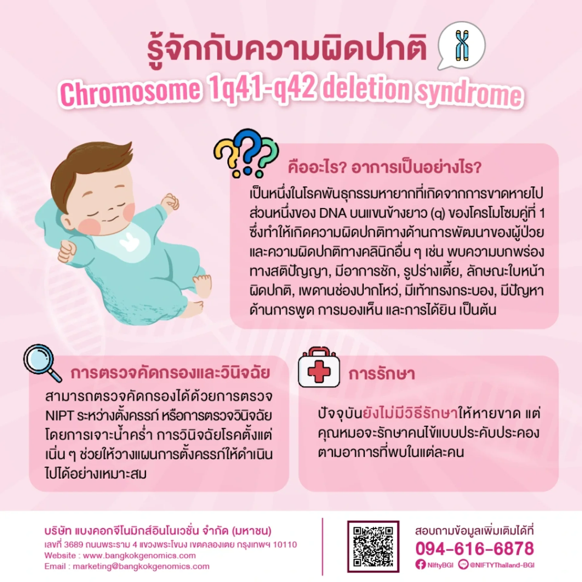 นิฟตี้เชื่อว่าการแบ่งปันความรู้เกี่ยวกับความผิดปกติทางพันธุกรรมจะเป็นประโยชน์ต่อคุณพ่อคุณแม่ วันนี้แอดมินจะมาเสนอข้อมูลเกี่ยวกับโรค Chromosome 1q41-q42 deletion syndrome ซึ่งเป็นโรคทางพันธุกรรมหายากที่มีโอกาสพบได้ในทารกแรกเกิดทั่วโลก