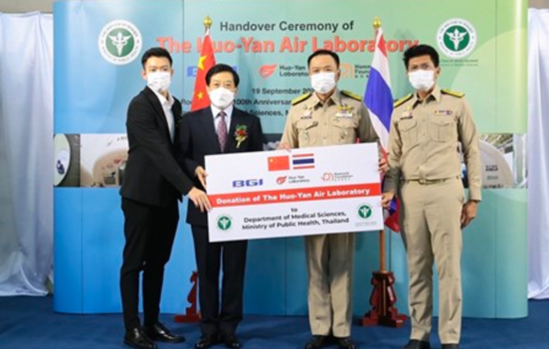 นายอนุทิน ชาญวีรกูล รองนายกรัฐมนตรี และรัฐมนตรีว่าการกระทรวงสาธารณสุข พร้อมด้วย ดร.สาธิต ปิตุเตชะ รัฐมนตรีช่วยว่าการกระทรวงสาธารณสุขนายแพทย์ศุภกิจ ศิริลักษณ์ อธิบดีกรมวิทยาศาสตร์การแพทย์ และคณะผู้บริหาร รับมอบห้องปฏิบัติการเคลื่อนที่ (The Huo-Yan Air Laboratory) จากมูลนิธิด้านการกุศล (Mammoth Foundation) สาธารณรัฐประชาชนจีน ซึ่งห้องปฏิบัติการดังกล่าวได้พัฒนาโดยบริษัทบีจีไอ จีโนมิกส์ (BGI Genomics) จำกัด จากสาธารณรัฐประชาชนจีน ให้แก่ กรมวิทยาศาสตร์การแพทย์ กระทรวงสาธารณสุข จำนวน 3 ห้อง เพื่อสนับสนุนประเทศไทยในการรับมือ กับโรคโควิด 19 และโรคระบาดอื่นๆ ที่เป็นปัญหาทางด้านสาธารณสุขของประเทศ ภายใต้การประสานงาน ของสถานเอกอัครราชทูตจีน ประจำประเทศไทย โดยมี นายหาน จื้อเฉียง (H.E. Mr.Han Zhiqiang) เอกอัครราชทูตสาธารณรัฐประชาชนจีน ประจำประเทศไทย และคณะ เป็นตัวแทนมอบ พร้อมด้วย Mr.Jeremy Cao รองประธาน บริษัท BGI Genomics จำกัด ร่วมเป็นสักขีพยาน เมื่อวันที่ 19 กันยายน 2565 ที่กรมวิทยาศาสตร์การแพทย์ จ.นนทบุรี