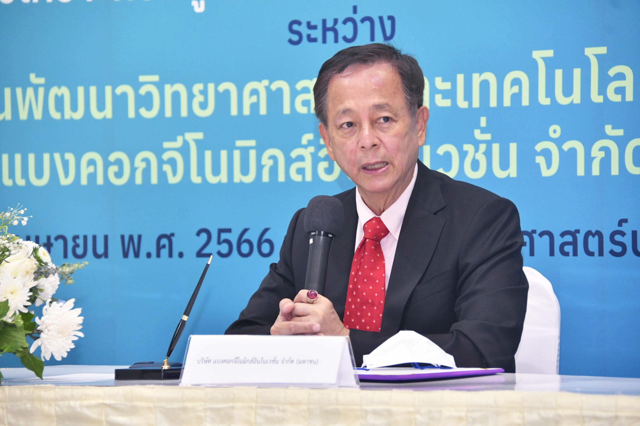 นายปรีชา เลาหพงศ์ชนะ กรรมการบริษัทฯ กล่าวว่า บริษัทแบงคอกจีโนมิกส์อินโนเวชั่น จํากัด (มหาชน) มีความยินดีเป็นอย่างยิ่งที่ได้ร่วมมือศึกษาวิจัยความหลากหลายจุลินทรีย์ในลำไส้ของประชากรไทยที่มีสุขภาพดี กับ สำนักงานพัฒนาวิทยาศาสตร์และเทคโนโลยีแห่งชาติ ซึ่งมีความรู้ ความเชี่ยวชาญในด้านการวิจัยและพัฒนาเทคโนโลยีการตรวจวิเคราะห์ เพื่อพัฒนาต่อยอดเป็นระบบสารสนเทศที่เป็นฐานข้อมูลจุลินทรีย์ในลำไส้ของประชากรไทยในอนาคต โดย บริษัทฯ หวังเป็นอย่างยิ่งว่า ด้วยความร่วมมือครั้งนี้จะเป็นประโยชน์ต่อประชากรไทย ในด้านการส่งเสริมเทคโนโลยีการตรวจที่มีประสิทธิภาพ และพัฒนาบุคลากรในประเทศ รวมถึงการขยายความร่วมมือด้านงานวิจัยและพัฒนาร่วมกับ สวทช. อย่างต่อเนื่องในอนาคต”